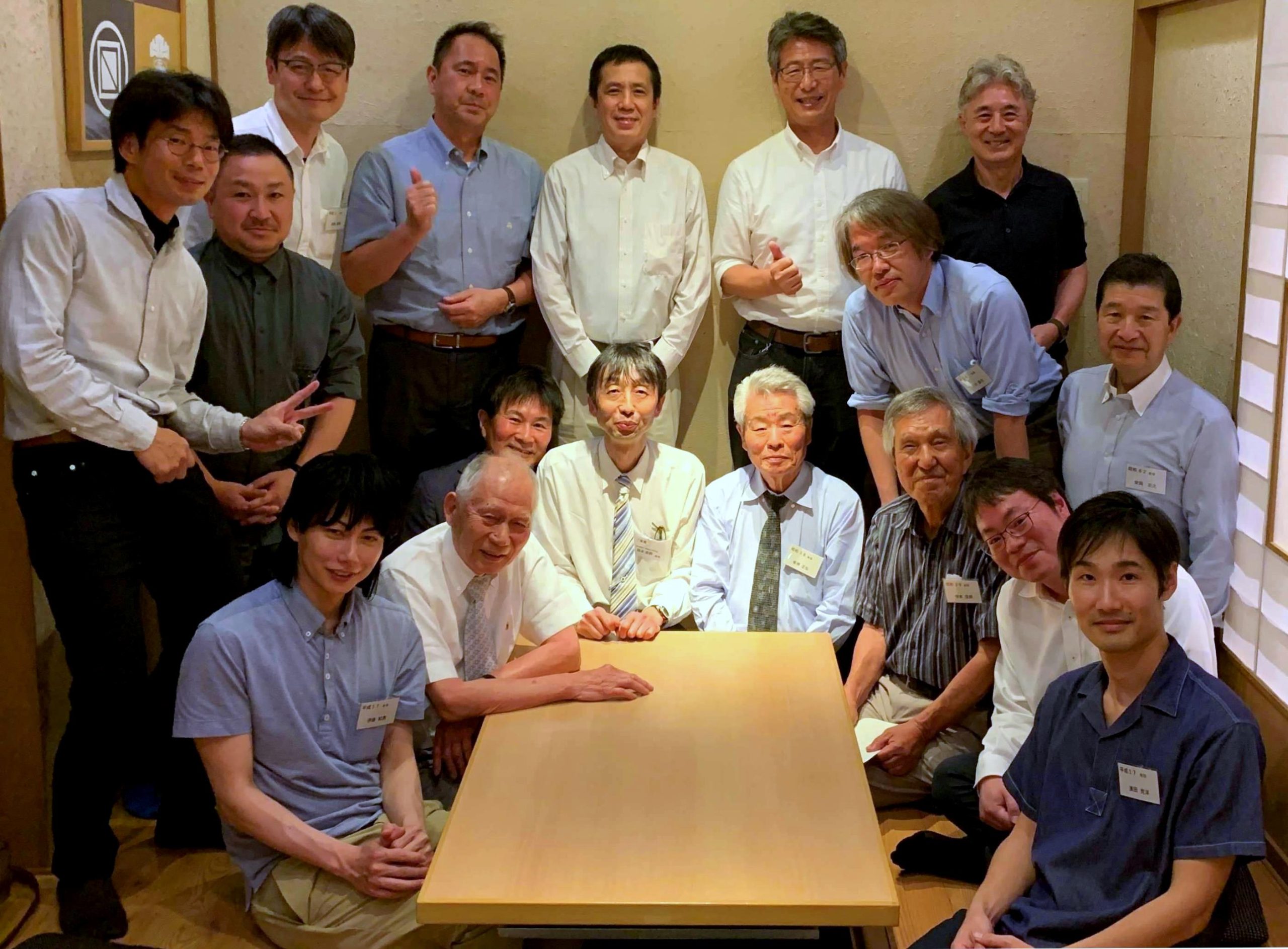 (前列向かって左から)、伊藤和真(H17)、伊藤博之(S41)、中尾隆史(S49)、脇本辰郎教授、坂根正弘(S38)、守本佳郎(S39)、原嘉聡(H17)、濱田克洋(H17)、