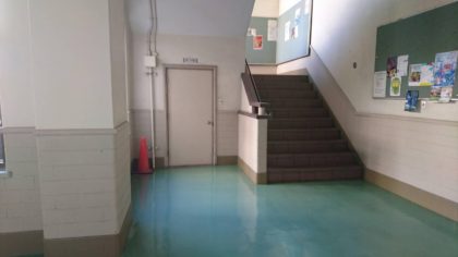 1号館1階には階段横にポンプ室がある。一見何の変哲もないように思われるポンプ室には、現在でも大学の歴史の痕跡が残っている。