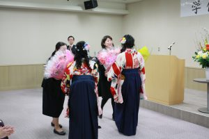 看護系同窓会「よつば会」も卒業のお祝いとして朽木会長の祝辞と、よつば会役員の先輩2名より花束の贈呈を行いました。3年次の臨地実習で来られていた学生さんが、晴れやかにしっかり授与されている姿に4年間の成長を感じました。これから社会に羽ばたいていく卒業生の新しい門出を、同窓生としてお祝いできたことを大変嬉しく思っています。これからも大いに活躍されることを願っています。    (文責:鷺森かおる)
